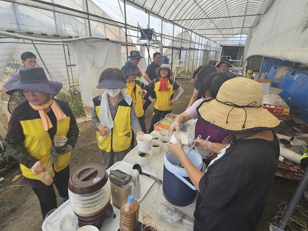 공예마을에 뿌리내린 12개 공방이 모인 협의회는 수해를 입은 오이하우스 농가 복구작업 현장을 찾아 이른 아침부터 정성스럽게 준비한 식사와 음료를 대접했다.