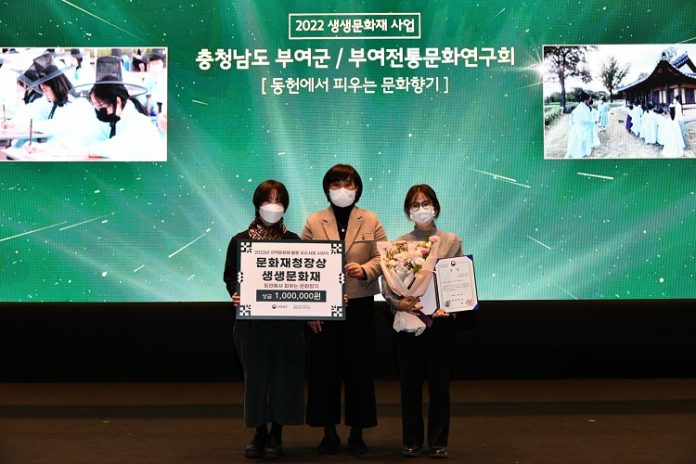 부여군(군수 박정현)이 최근 열린 ‘2022년 지역문화재 활용 우수사업 시상식’ 생생문화재 사업 부문에서 ‘동헌에서 피우는 문화향기’로 문화재청장상을 수상했다.