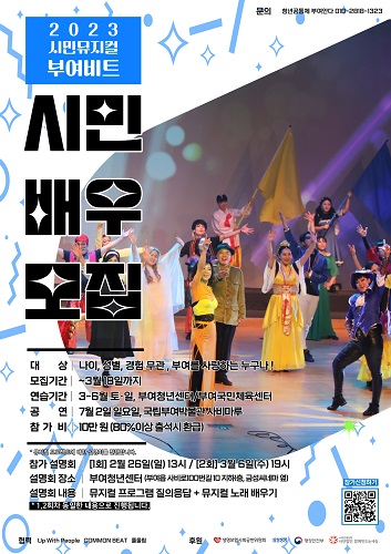 부여군, 2023 시민뮤지컬 ‘부여비트’ 배우 모집-부여를 사랑하는 누구에게나 뮤지컬 배우의 기회 생겨…오는 18일까지 배우 모집-