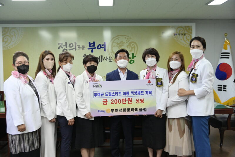 부여선화로타리클럽(회장 임안순)은 최근 ‘부여군 드림스타트 공부방만들기 사업’에 동참하기 위해 아이들을 사랑하는 마음을 담아 200만원 상당의 책상과 의자세트를 기탁했다.