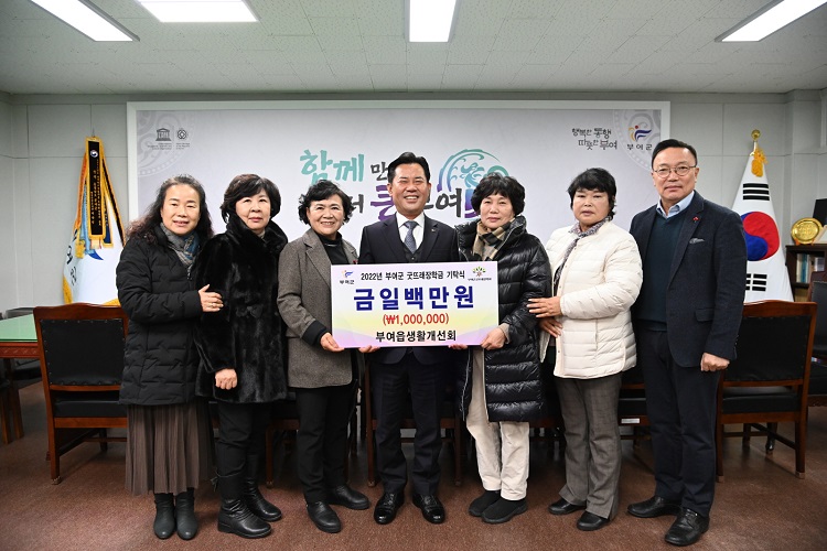 부여읍 생활개선회(회장 이미연) 임원진은 최근 부여군청을 방문해 지역 향토인재 육성을 위한 굿뜨래장학금 100만원을 부여군굿뜨래장학회(이사장 박정현)에 기탁했다.