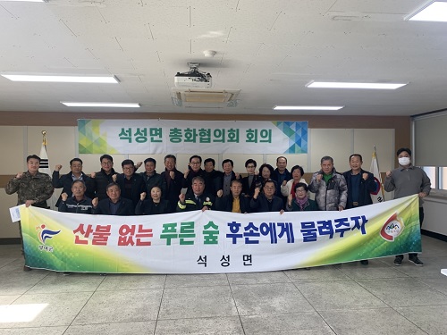 윤익희 석성면장은 산불은 예방이 최상책이라는 점을 강조하면서, “그 중심에는 총화협의회 회원분들의 적극적인 협조가 반드시 필요하다는 점을 다시 한번 상기해주시고, 산불로 인한 피해가 발생하지 않도록 모두가 파수꾼이 되어 주시기 바란다”고 당부했다.