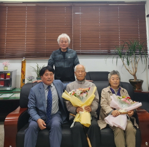 옥산면(면장 김봉태)은 어버이날을 맞이해 작년에 이어 지팡이와 지압봉을 지역 최고령 어르신들에게 꽃다발과 함께 전달했다.