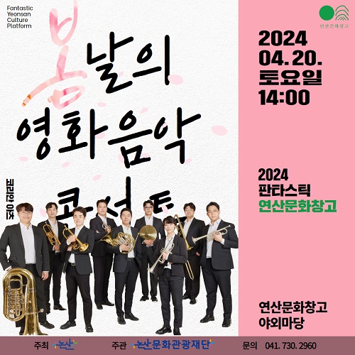 논산문화관광재단(대표이사 지진호)은 연산문화창고에서 4월 20일 오후 2시 ‘봄날의 영화음악 콘서트’를 개최한다.