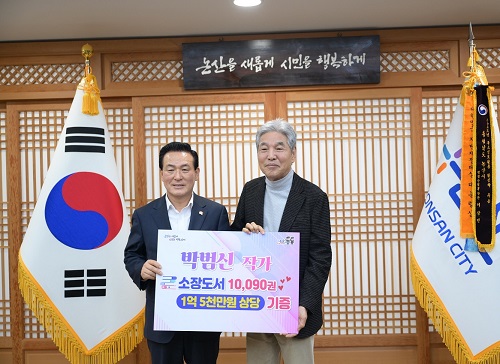 박 작가는 “사랑하는 내 고향 논산이 책과 문화의 생명력으로 더욱 빛날 수 있게끔 돕고 싶다”는 뜻을 밝혔다. 박 작가의 소장 도서는 총 10,090권으로 시가로는 약 1억 5천만 원에 달한다. 전현직 작가가 간직했던 도서를 지역사회로 기증한 것은 이번이 처음으로, 논산시민을 향한 그의 마음이 고스란히 느껴지는 대목이다.