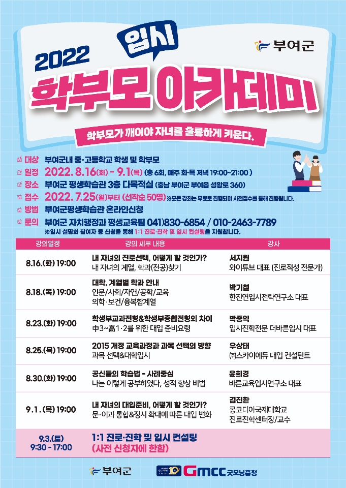 (재)부여군굿뜨래장학회, 2022년 학부모 입시 아카데미 선착순 접수