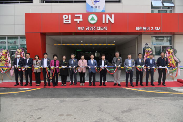 부여군(군수 박정현)은 6일 주민들의 오랜 숙원이던 ‘부여 주차타워’ 준공식을 개최했다.