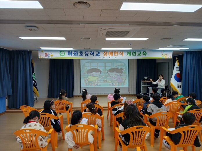 이화초등학교는 4월 8일 전교생을 대상으로 장애에 대한 이해를 높이고 편견을 줄이기 위한 장애인식개선교육을 실시했다고 밝혔다.