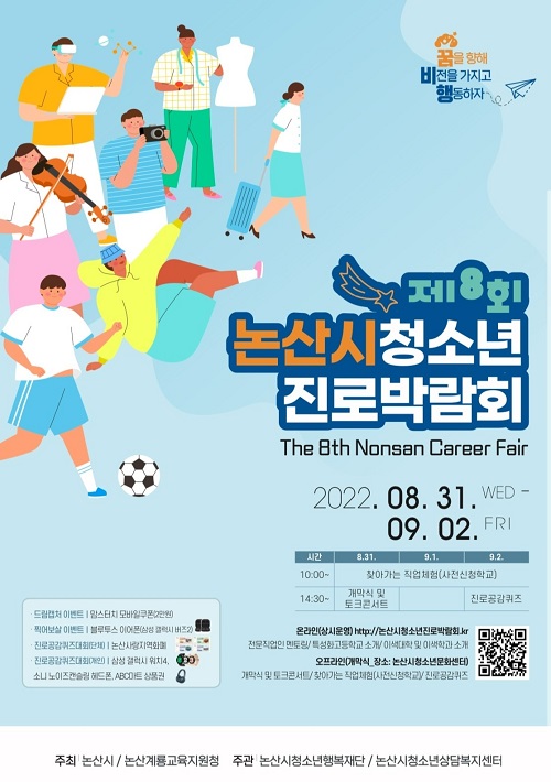 논산시 청소년행복재단(대표이사 권경주)은 오는 31일부터 ‘제8회 논산시 청소년 진로박람회 꿈.비.행.(꿈을 향해 비전을 가지고 행동하자! )’(이하‘진로박람회’)를 개최한다.