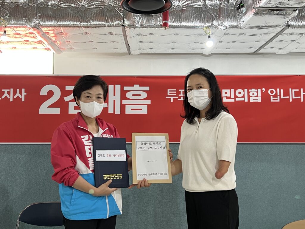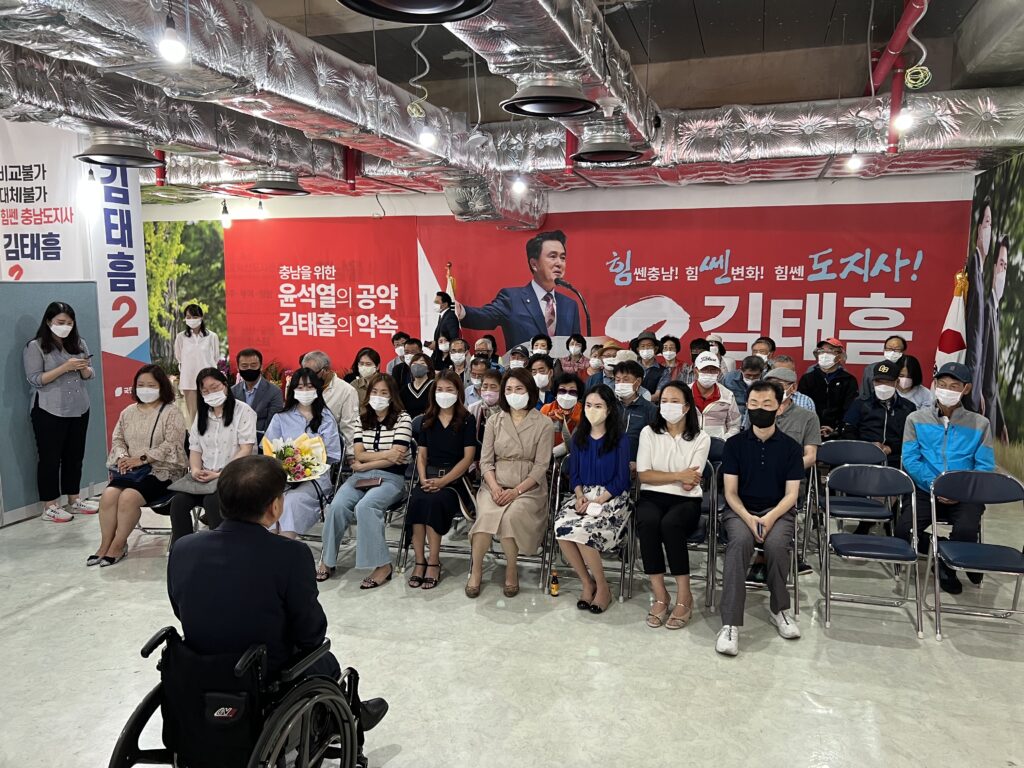 충남지역 장애인 및 장애인 가족들이 제8대 지방동시선거에서 김태흠 충남도지사 후보 지지를 선언했다.