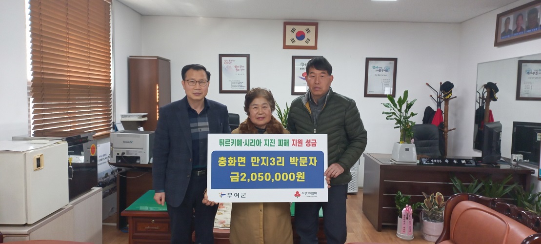 충화면 만지3리 주민 박문자님은 얼마 전 지진으로 큰 피해를 입은 튀르키예, 시리아 이재민을 위해 205만원의 구호 성금을 충화면에 기탁했다.
