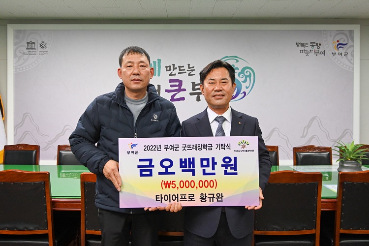 이에 박정현 부여군수는 “향토 인재 육성을 위한 장학금으로 큰 금액을 기탁해 주셔서 감사드린다”며 “부여군굿뜨래장학회가 지역인재를 지원하고 체계적인 교육환경을 조성하는 장학사업에 소중하게 사용하겠다”고 화답했다.