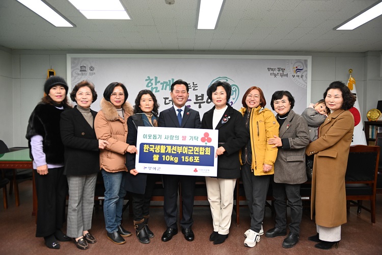 한국생활개선부여군연합회(회장 고승현)는 지난 5일 우리 고유의 명절인 설을 맞이하여 쌀 1,560kg(156포/10kg)을 부여군에 기탁했다.