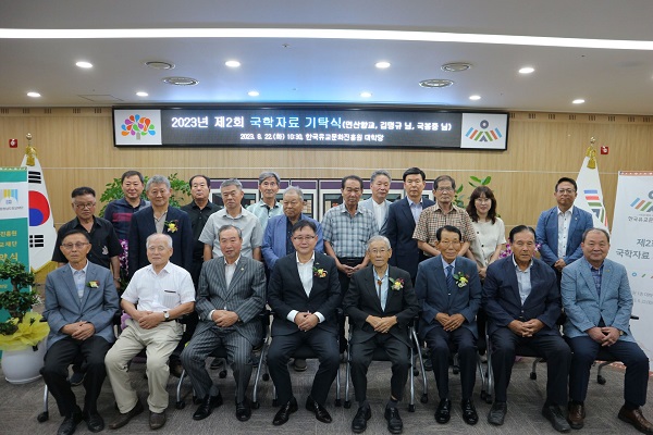 한국유교문화진흥원(원장 정재근, 이하 ‘한유진’)은 문화체육관광부 국비보조금 지원으로 2023년 충청권역 국학자료 수집 사업을 추진 중이다. 그 성과로 8월 현재 14,000여 점의 유물을 수집하였으며, 이를 기념하여 지난 8월 22일에 연산향교(전교 이주용), 김명규(성균관 고문), 국봉중(연산향교 고문)을 초청하여 국학자료 기탁식을 진행하였다. 또한 충남 지역 34개 향교 자료 조사의 원활한 추진과 충남지역 유림단체와의 소통 강화를 위해 충청남도향교재단(이사장 성기문, 이하 ‘충남향교재단’)과 업무협약을 체결하였다.