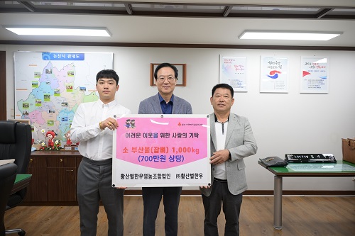 황산벌한우영농조합법인과 ㈜황산벌한우는 논산표 우량 한우를 사육ㆍ가공ㆍ유통하는 전문업체로, 평소 지역사회 소외계층을 위한 나눔 활동을 지속적으로 펼쳐오고 있어 많은 이들에게 귀감이 되고 있다.