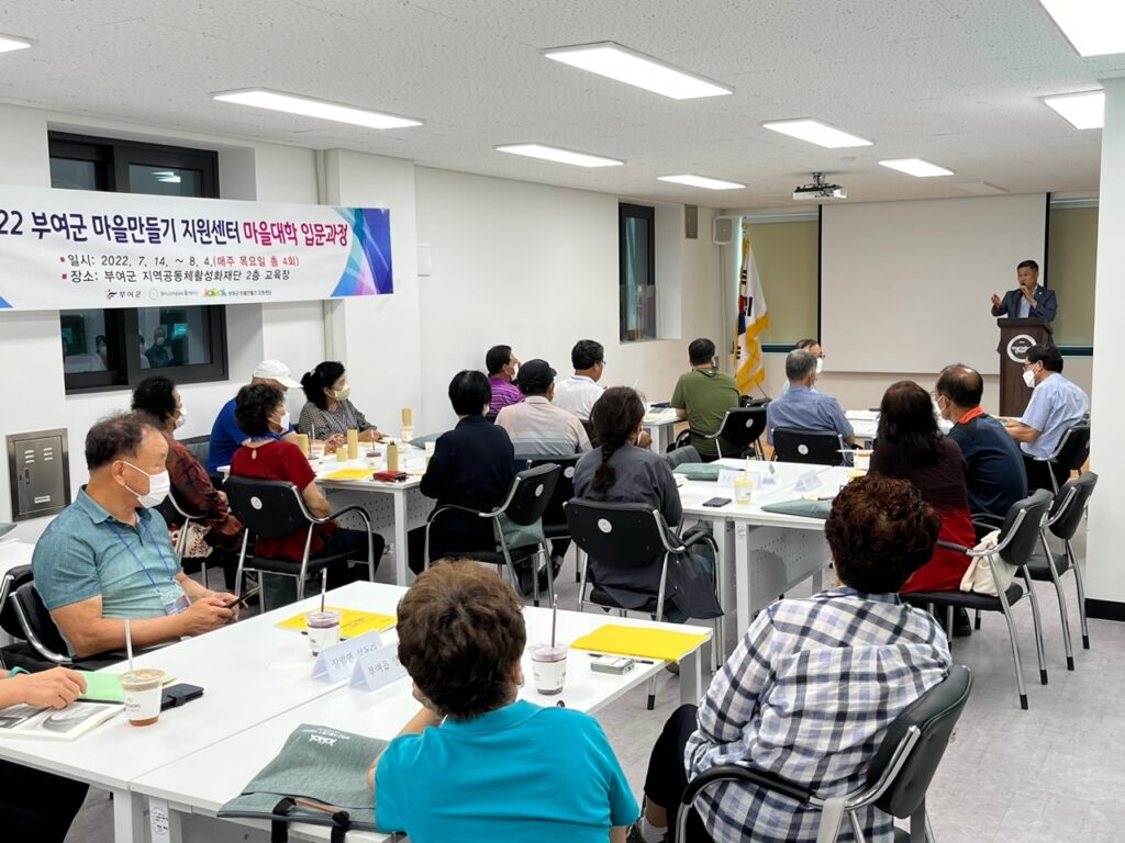 부여군 지역공동체활성화재단(이사장 소명수) 마을만들기 지원센터는 2022년 부여군 마을만들기 마을대학 입문과정을 개강했다.
