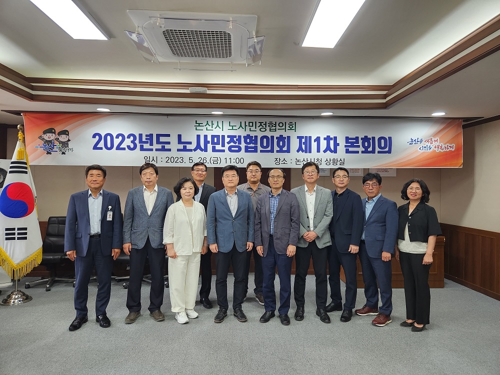 논산시 노사민정협의회(위원장: 백성현 논산시장)가 26일 논산시청 상황실에서 노사민정협의회 위원 16명이 참석한 가운데 ‘노사민정협의회 제1차 본회의’를 열었다.