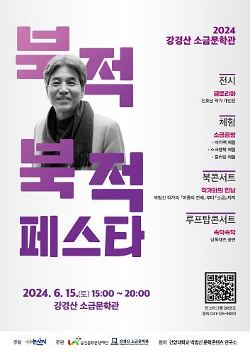 문학을 사랑하는 분들이 모여 박범신이 그간 출간한 서적에 대해 이야기 나누는 뜻깊은 시간을 갖길 바라며 준비한 이번 <북적북적 페스타>에는 리치파이x아츠플렉스의 낭독과 즉흥 재즈공연이 결합된 낭독재즈 공연과 함께 즐길 수 있으며, 그 외에도 소금문학관 갤러리에서 신효남 작가의 개인전 <글로리아> 전시와 비치백 만들기, 스크랩북 만들기, 컬러링 체험 등 다양한 프로그램을 15시부터 무료로 참여할 수 있다.