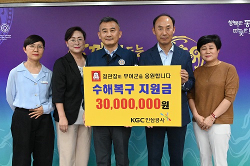 KGC인삼공사 고려인삼창은 최근 부여 지역의 수해피해 취약계층 주민을 돕는 데 사용해 달라며 성금 3,000만원을 기부했다.