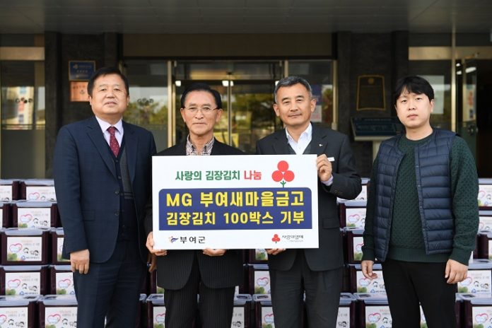 MG부여새마을금고는 관내 어려운 이웃을 위해 김장김치 450포기(100박스)를 최근 부여군에 기탁했다.